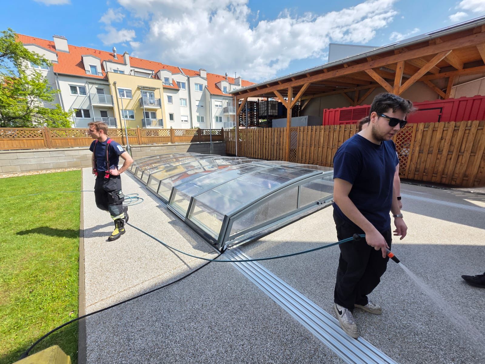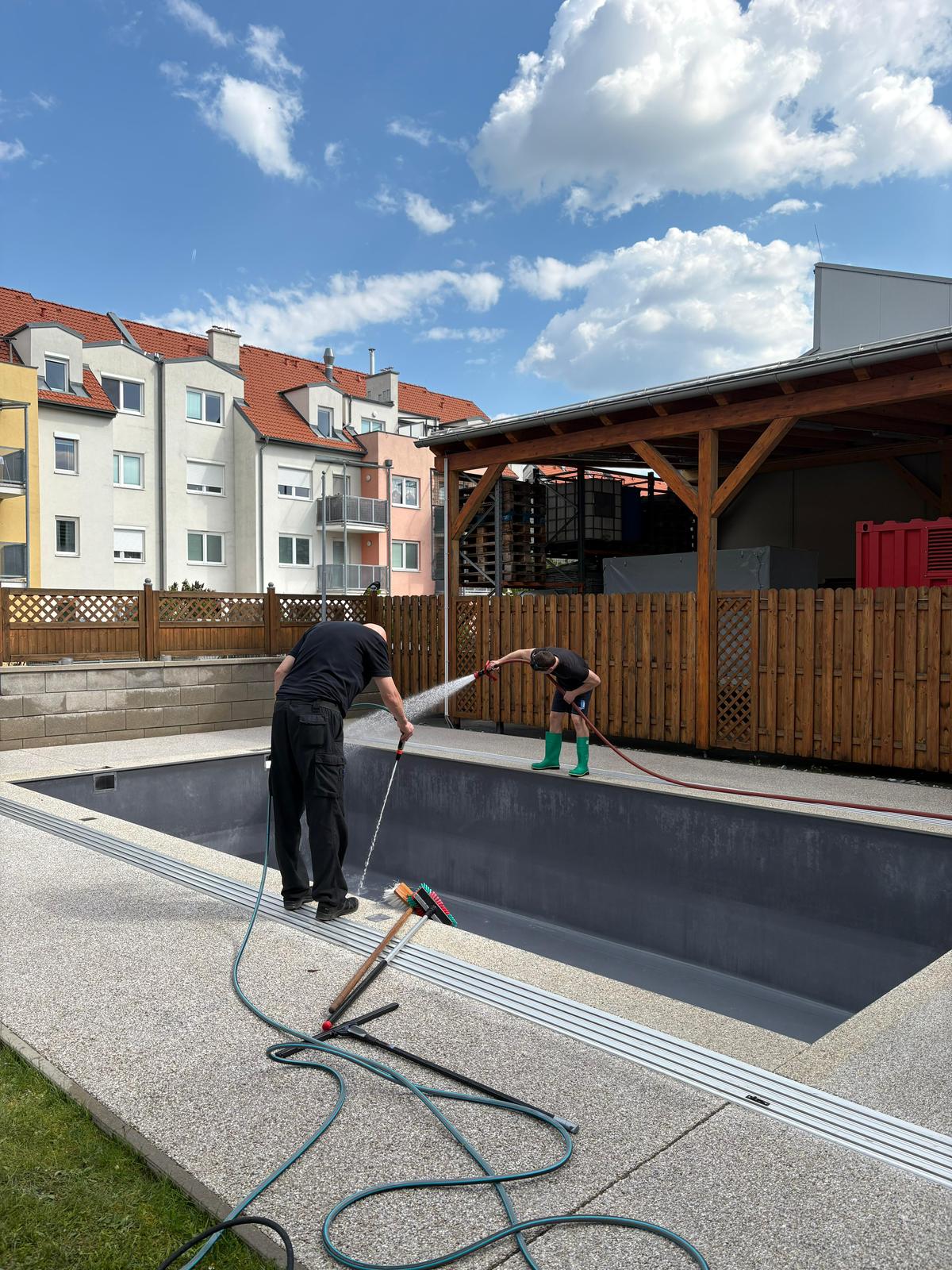 Im Zusammenwirken wurde das Pool gereinigt und anschließend mit frischem Wasser für den herannahenden Sommer befüllt. Auch der umliegende Bereich, der Garten, die Grünflächen und die angrenzende Pergola samt Sitzgarnituren wurden gesäubert. Von nun an können die Kameradinnen und Kameraden der Feuerwehr Mödling wieder in die Badesaison starten.