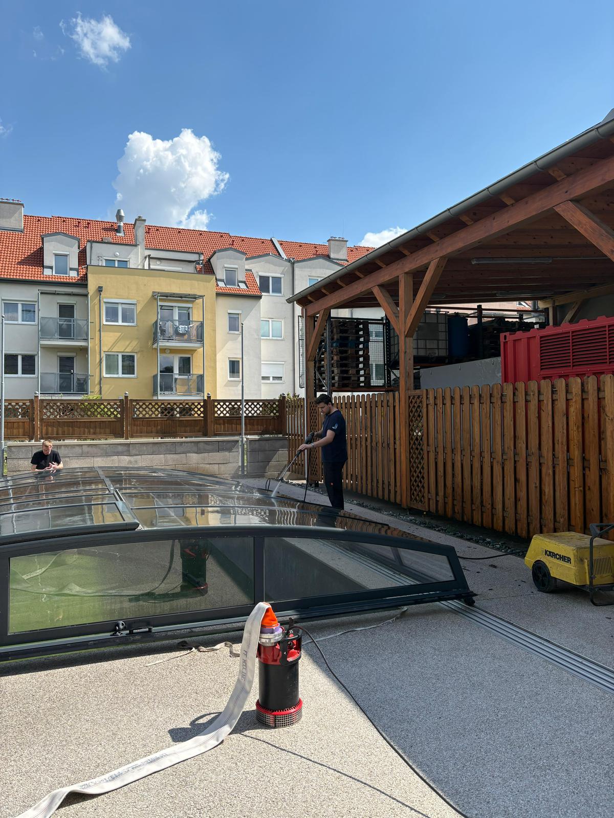 Vergangenen Freitag, den 17.04.2026, fanden sich einige Mitglieder zur jährlichen Poolreinigung sowie zu Instandhaltungstätigkeiten des Freizeitbereichs im Feuerwehrhaus ein.