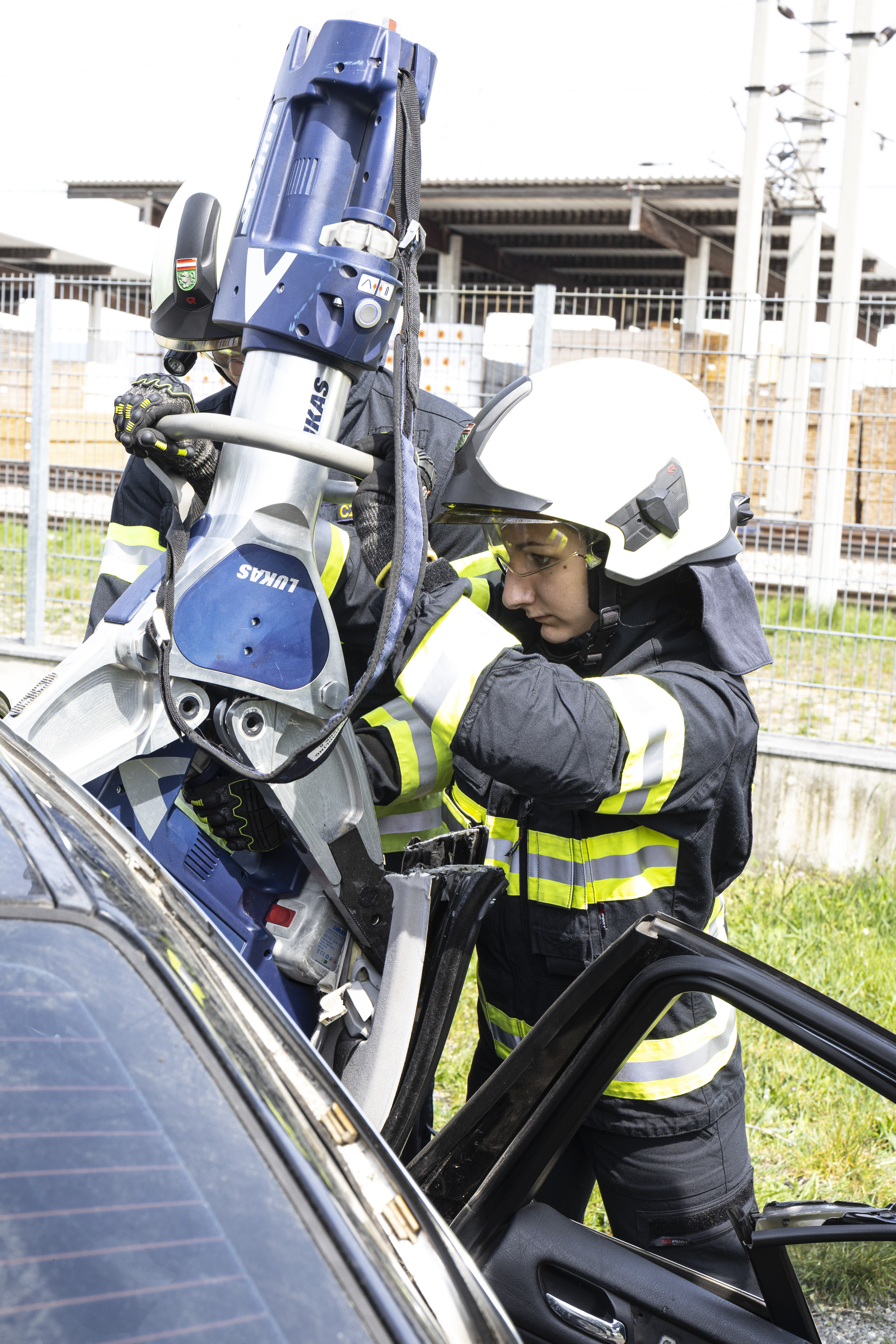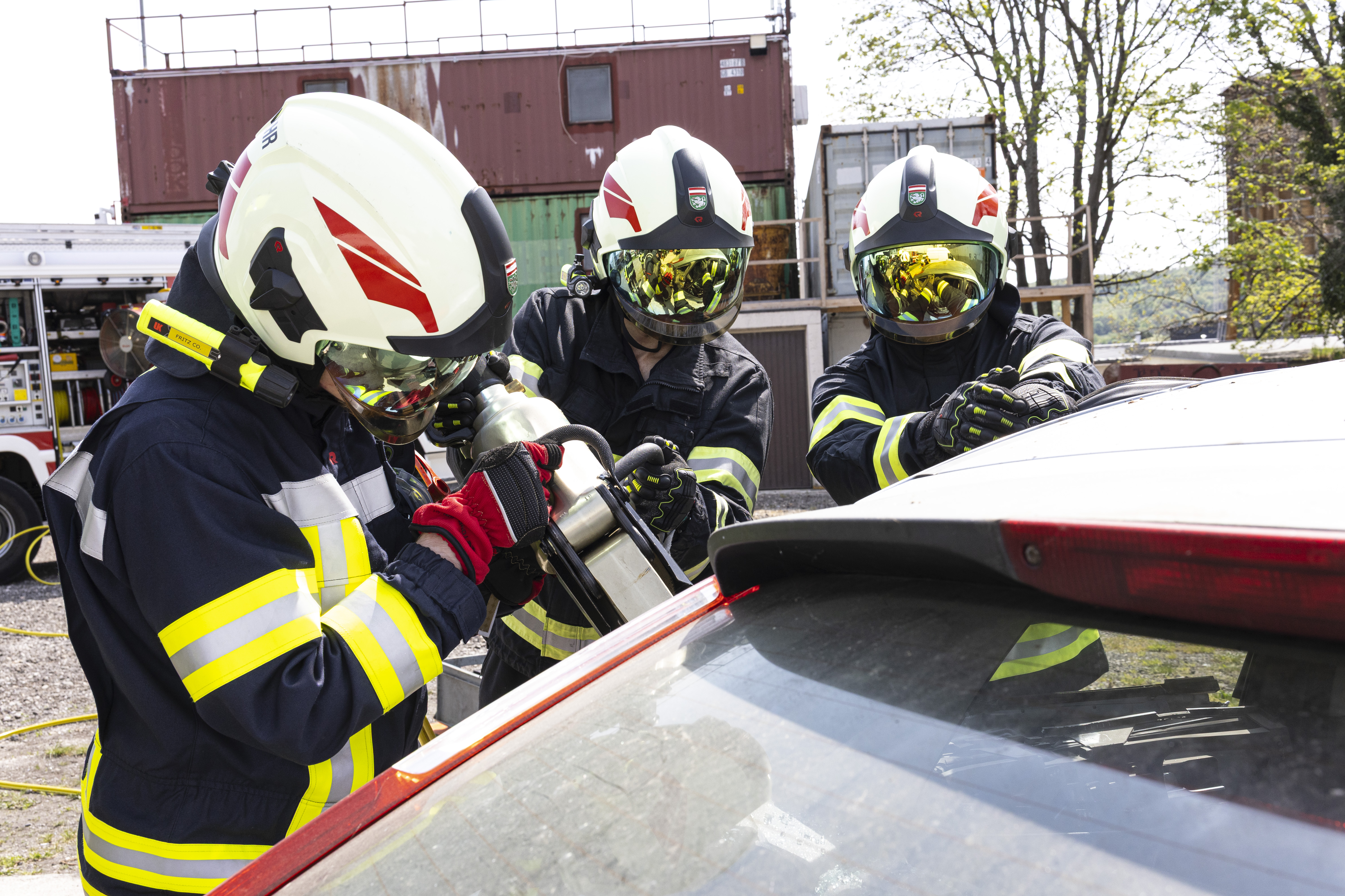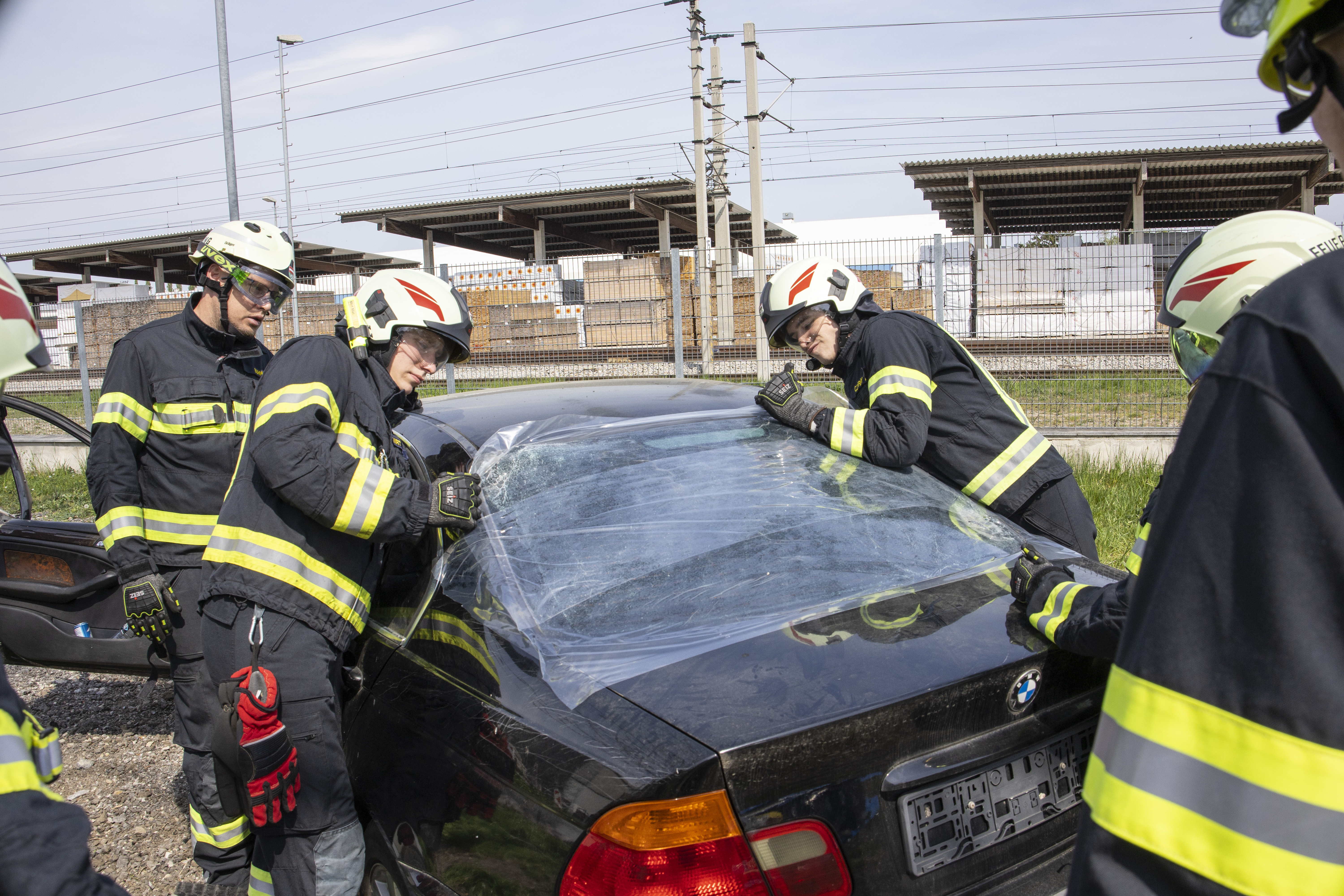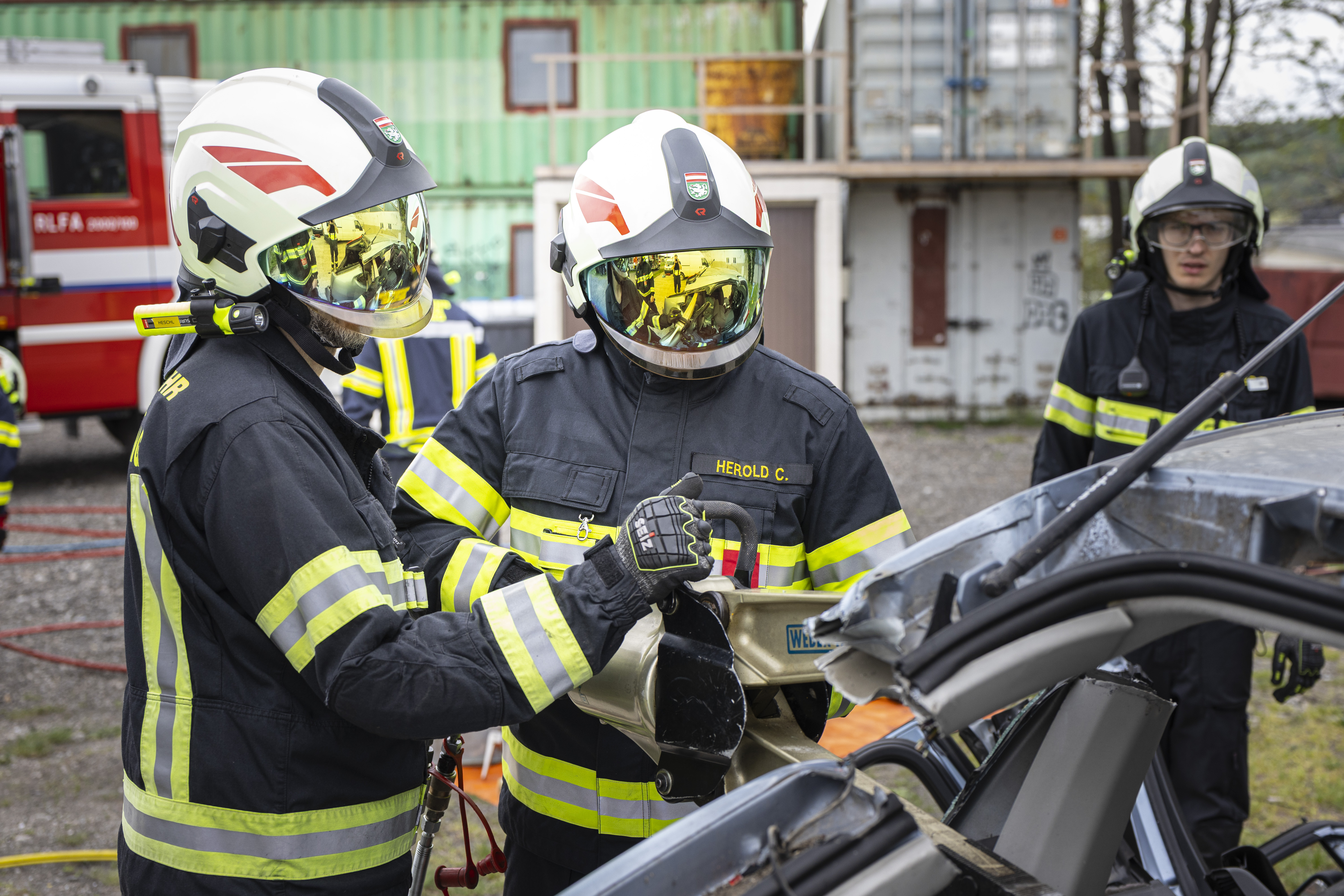 Bereits gegen 07:30 Uhr konnte Zugskommandant Paul-Thorwald Fastner, als Hauptverantwortlicher für das neue Ausbildungskonzept der Grundausbildung, zehn TeilnehmerInnen und drei Ausbilder im Lehrsaal begrüßen. Nach einer kurzen Theorieeinheit zu den Grundlagen des technischen Einsatzes stand bereits praktisches Arbeiten auf dem Programm. Neben der Fahrzeug- und Gerätekunde, dem Aufbau eines Geräteablageplatzes und dem Sichern und Stabilisieren von Unfallfahrzeugen, wurden am Vormittag auch bereits erste Grundlagen zur Menschenrettung an einem Unfallfahrzeug praktisch veranschaulicht. Nach einem gemeinsamen Mittagessen wurden die TeilnehmerInnen in zwei Gruppen aufgeteilt und konnten in über zwei Stunden mit den Ausbildnern Wolfgang Freiler, Stefan Wolf, Florian Steiner und Michael Buhn die technische Menschenrettung an Unfallfahrzeugen praktisch beüben. Besonders im Mittelpunkt stand das sichere Arbeiten mit den hydraulischen Rettungsgeräten. Die Schaffung einer kleinen und großen Seitenöffnung bis hin zur Dachabnahme konnten praktisch erlernt werden. Im Anschluss folgte die letzte Einheit des Tages in welcher der Umgang mit Hebekissen gefestigt wurde.