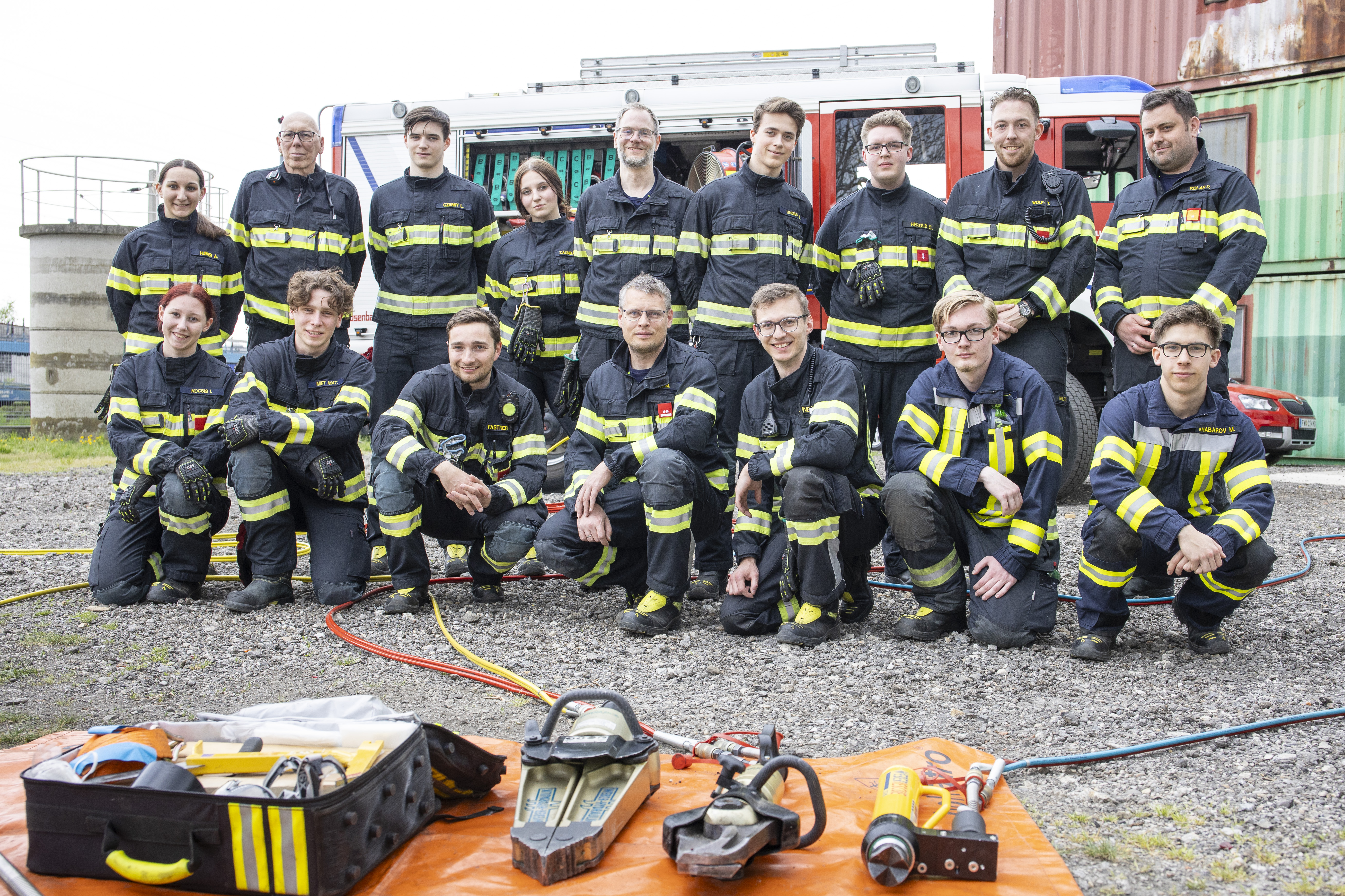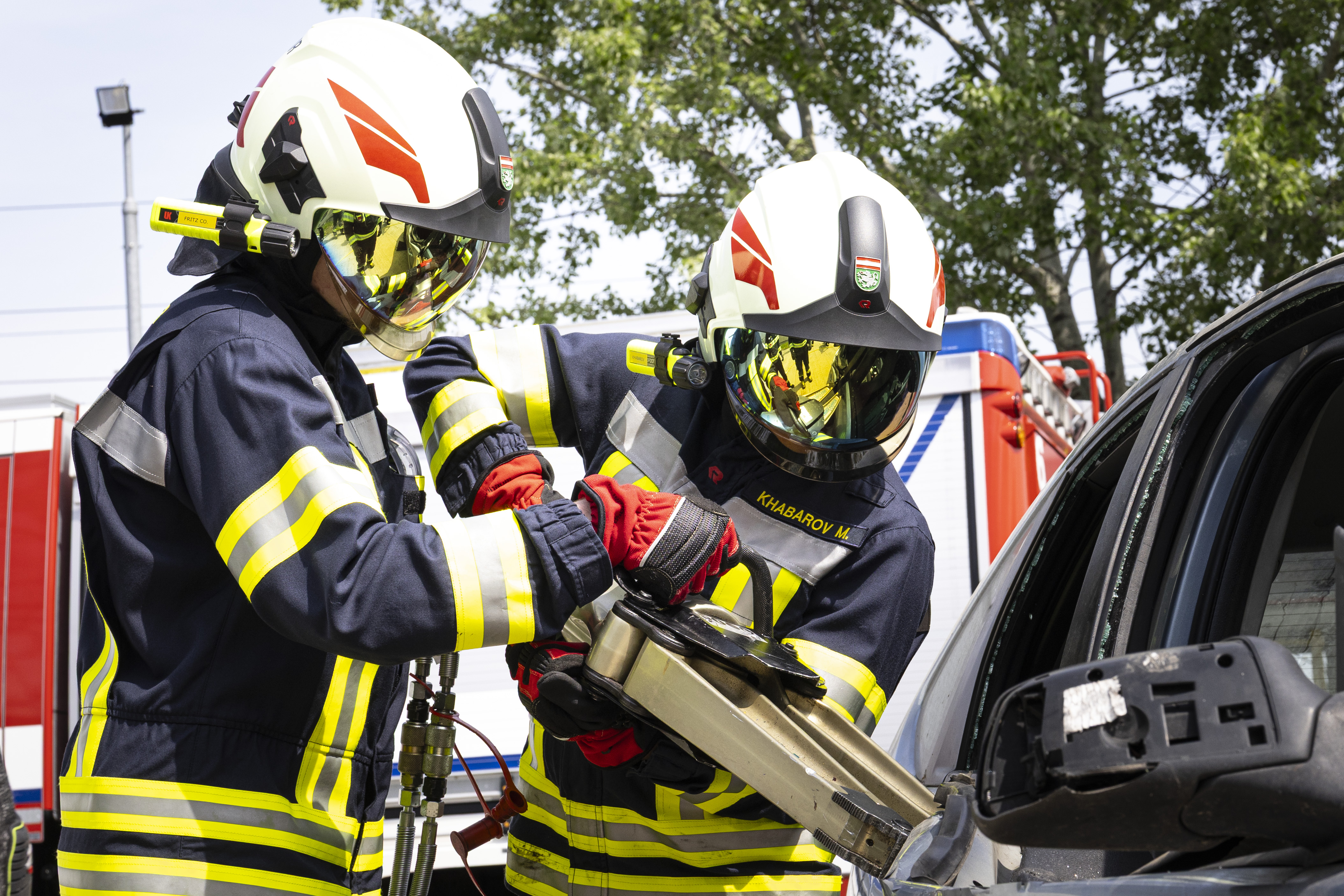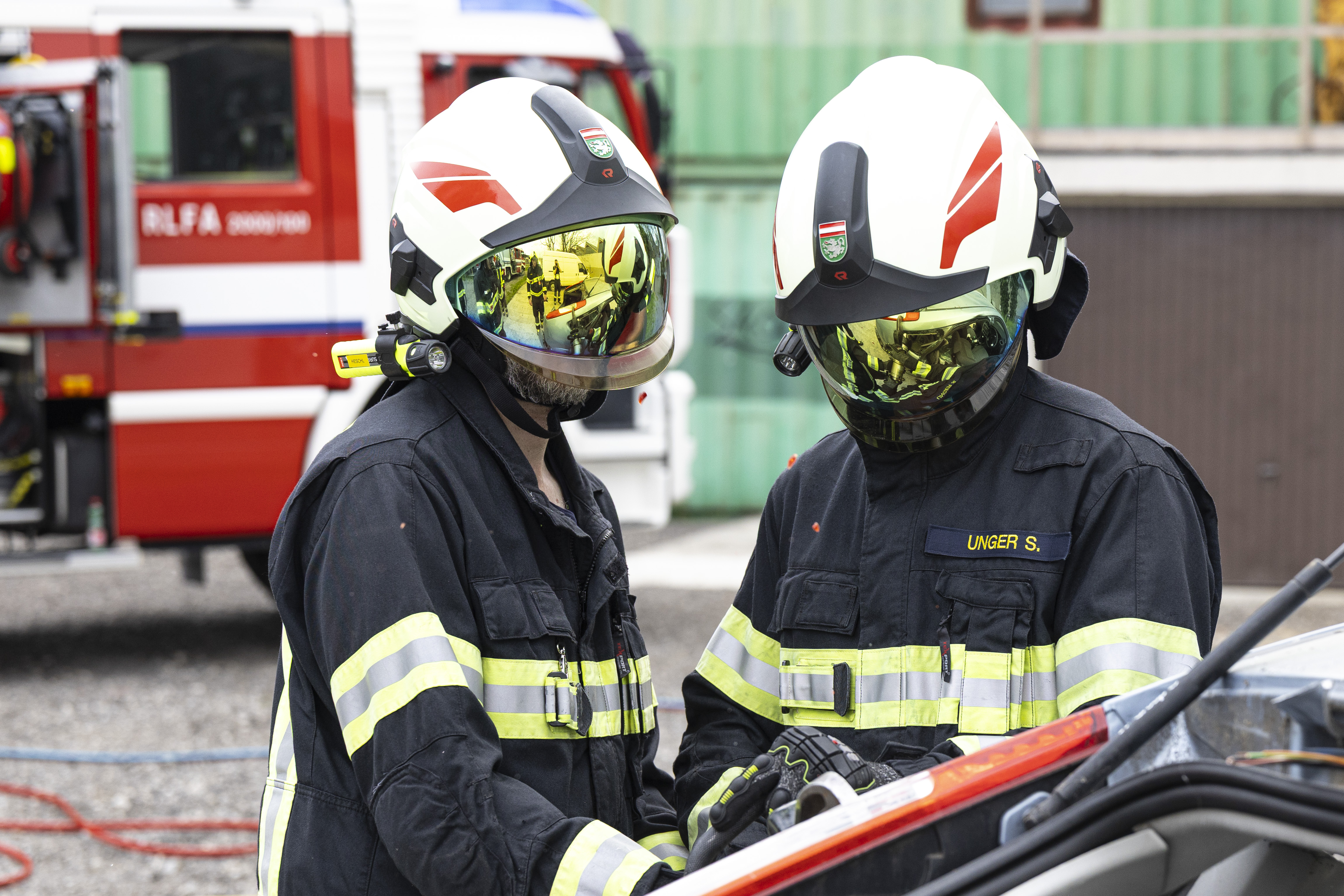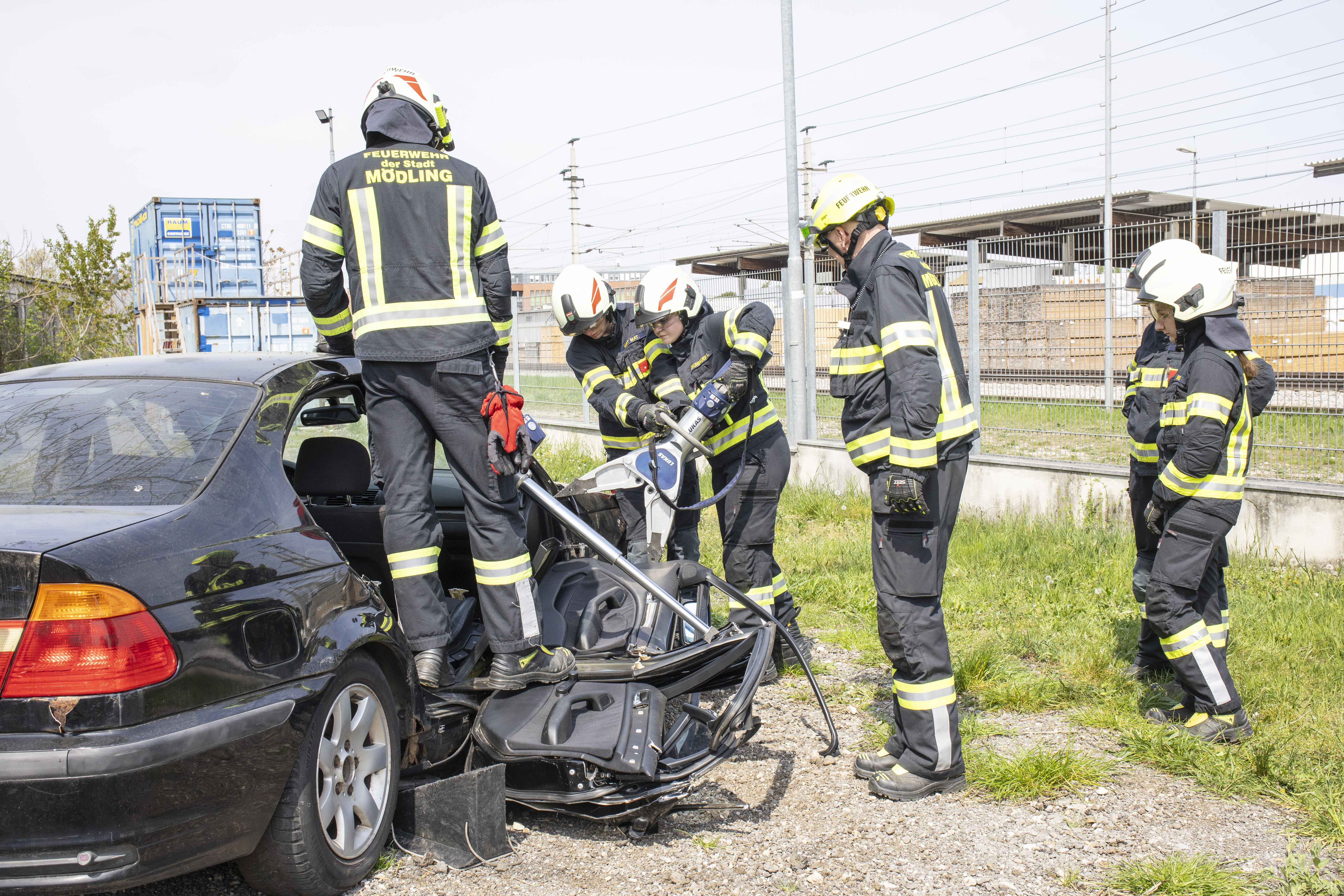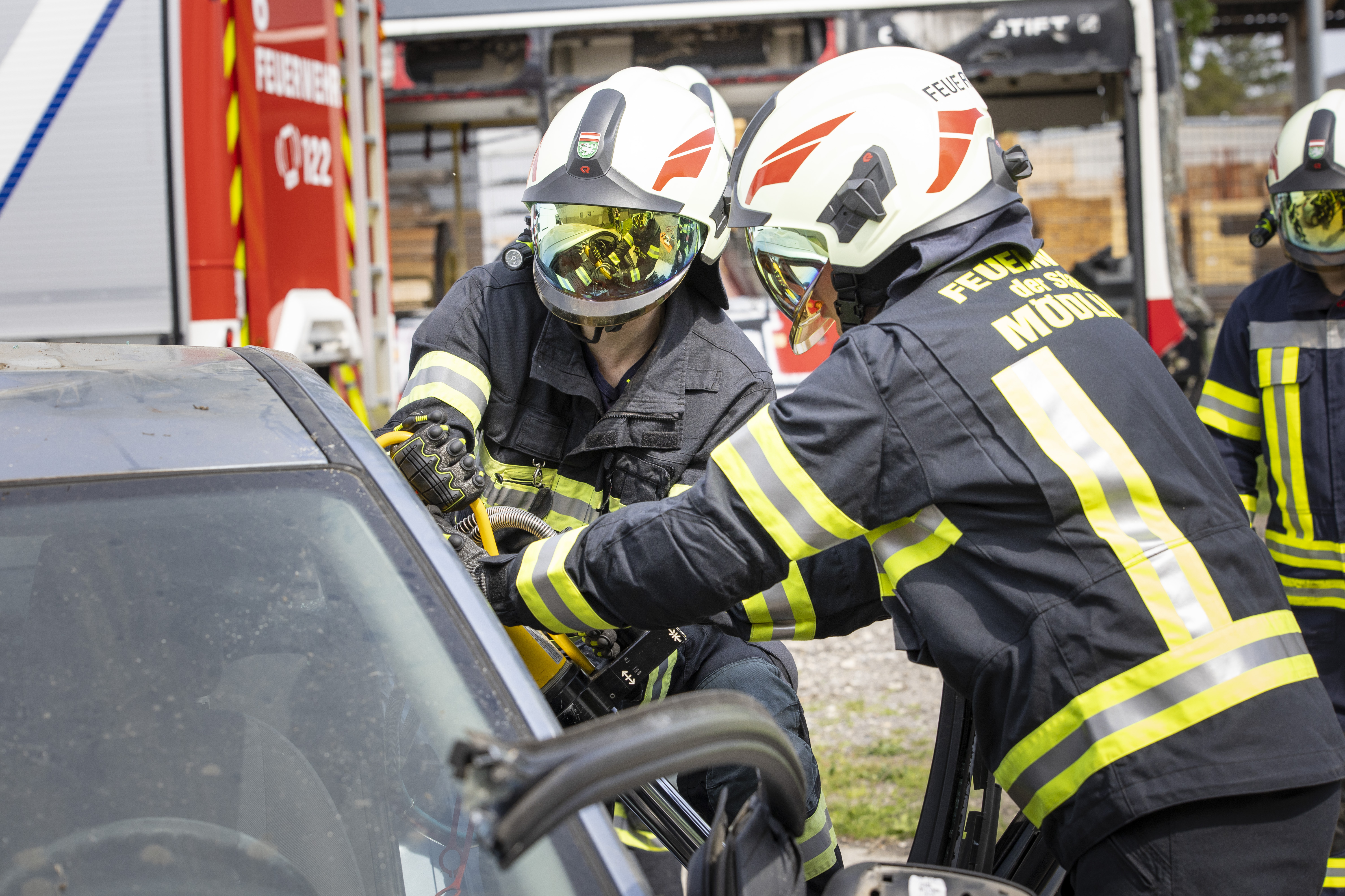 Bereits gegen 07:30 Uhr konnte Zugskommandant Paul-Thorwald Fastner, als Hauptverantwortlicher für das neue Ausbildungskonzept der Grundausbildung, zehn TeilnehmerInnen und drei Ausbilder im Lehrsaal begrüßen. Nach einer kurzen Theorieeinheit zu den Grundlagen des technischen Einsatzes stand bereits praktisches Arbeiten auf dem Programm. Neben der Fahrzeug- und Gerätekunde, dem Aufbau eines Geräteablageplatzes und dem Sichern und Stabilisieren von Unfallfahrzeugen, wurden am Vormittag auch bereits erste Grundlagen zur Menschenrettung an einem Unfallfahrzeug praktisch veranschaulicht. Nach einem gemeinsamen Mittagessen wurden die TeilnehmerInnen in zwei Gruppen aufgeteilt und konnten in über zwei Stunden mit den Ausbildnern Wolfgang Freiler, Stefan Wolf, Florian Steiner und Michael Buhn die technische Menschenrettung an Unfallfahrzeugen praktisch beüben. Besonders im Mittelpunkt stand das sichere Arbeiten mit den hydraulischen Rettungsgeräten. Die Schaffung einer kleinen und großen Seitenöffnung bis hin zur Dachabnahme konnten praktisch erlernt werden. Im Anschluss folgte die letzte Einheit des Tages in welcher der Umgang mit Hebekissen gefestigt wurde.