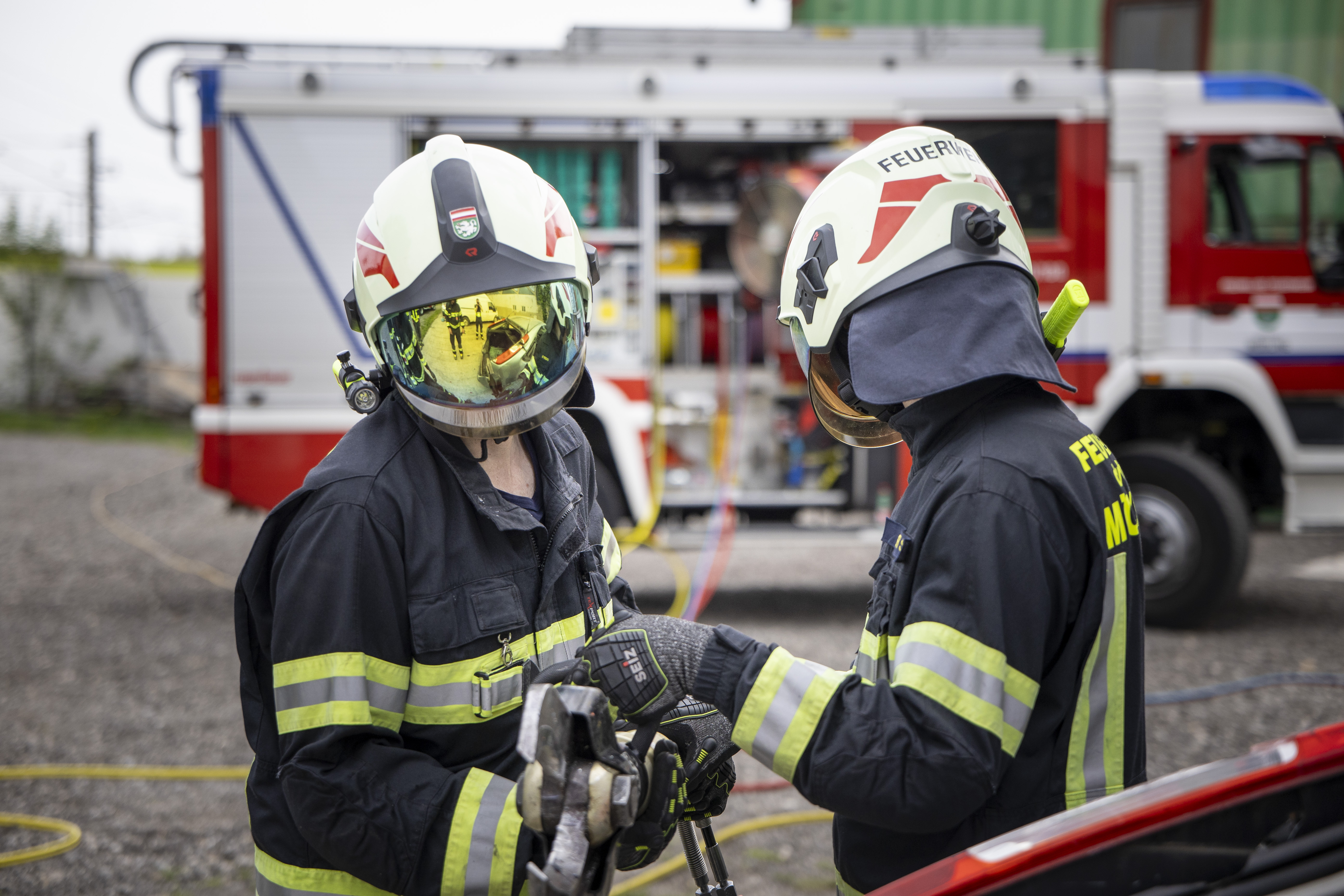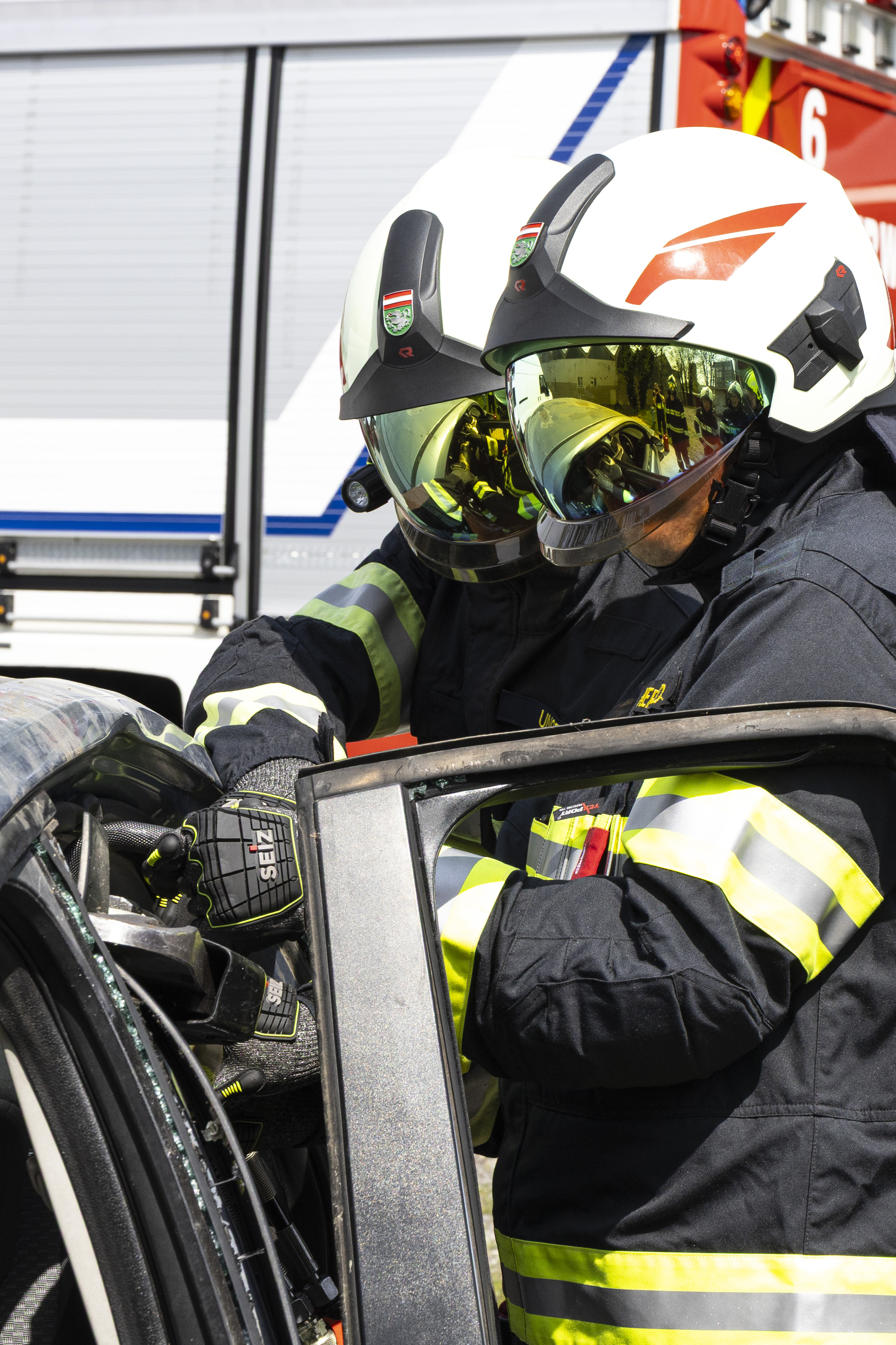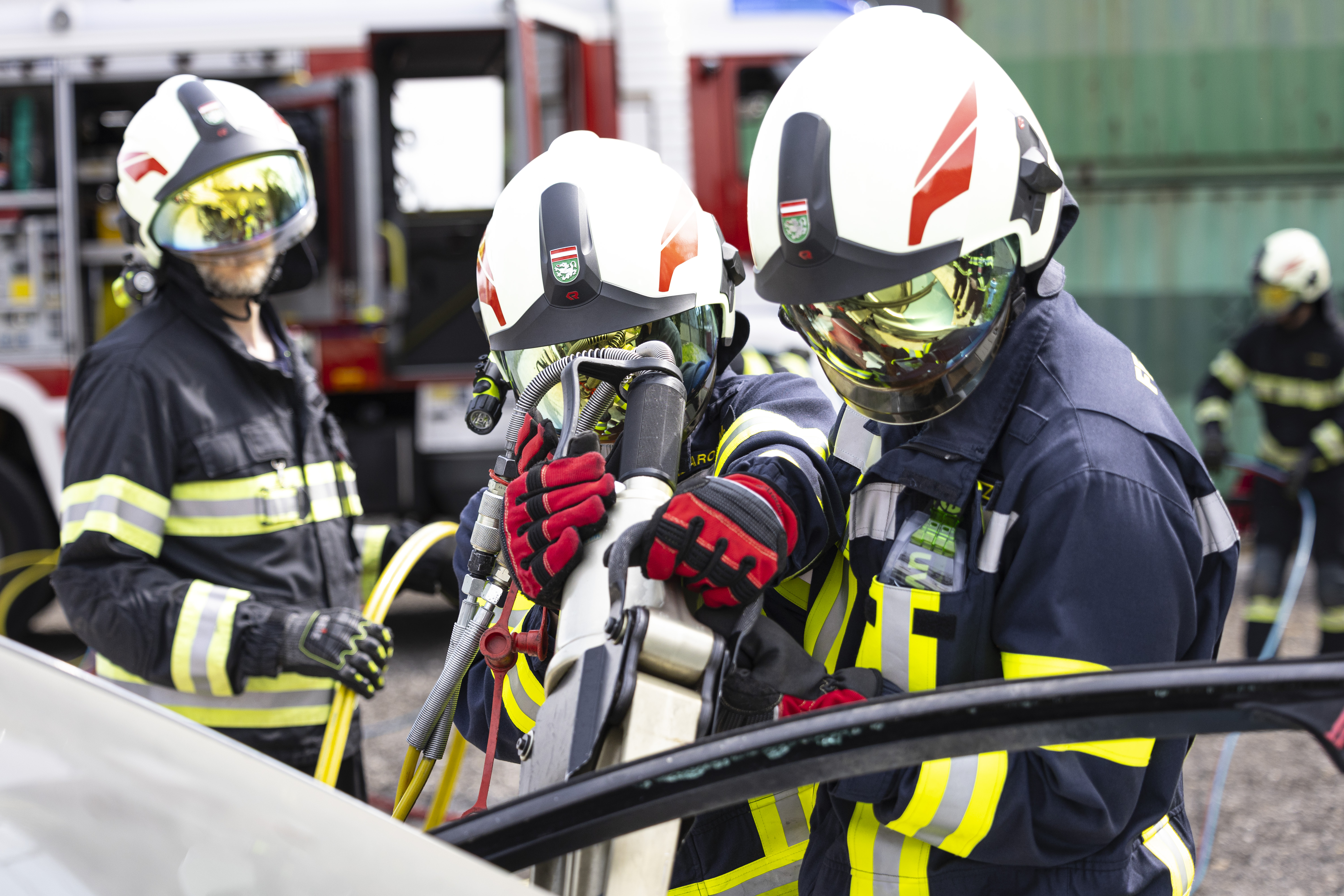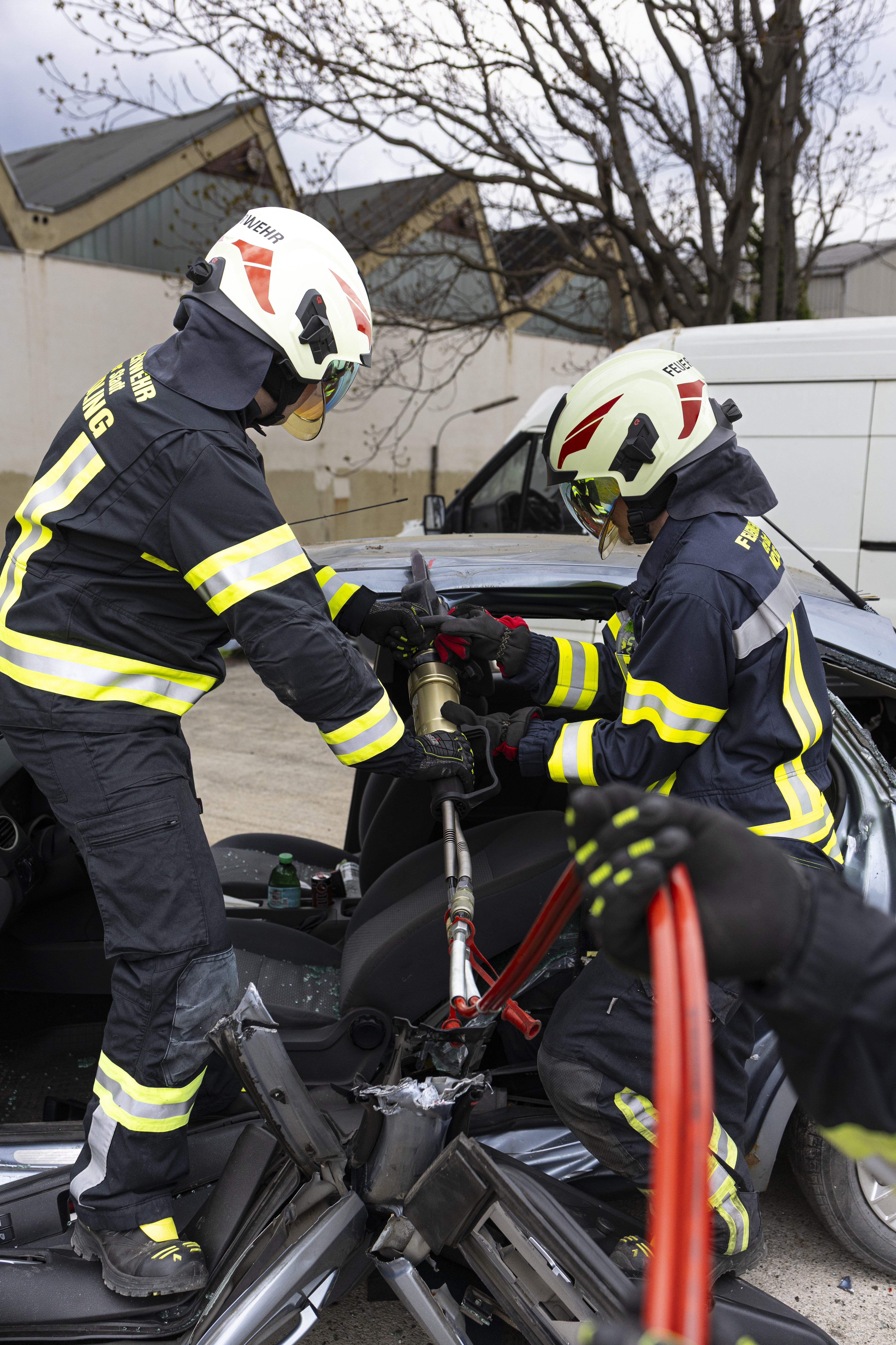 Bereits gegen 07:30 Uhr konnte Zugskommandant Paul-Thorwald Fastner, als Hauptverantwortlicher für das neue Ausbildungskonzept der Grundausbildung, zehn TeilnehmerInnen und drei Ausbilder im Lehrsaal begrüßen. Nach einer kurzen Theorieeinheit zu den Grundlagen des technischen Einsatzes stand bereits praktisches Arbeiten auf dem Programm. Neben der Fahrzeug- und Gerätekunde, dem Aufbau eines Geräteablageplatzes und dem Sichern und Stabilisieren von Unfallfahrzeugen, wurden am Vormittag auch bereits erste Grundlagen zur Menschenrettung an einem Unfallfahrzeug praktisch veranschaulicht. Nach einem gemeinsamen Mittagessen wurden die TeilnehmerInnen in zwei Gruppen aufgeteilt und konnten in über zwei Stunden mit den Ausbildnern Wolfgang Freiler, Stefan Wolf, Florian Steiner und Michael Buhn die technische Menschenrettung an Unfallfahrzeugen praktisch beüben. Besonders im Mittelpunkt stand das sichere Arbeiten mit den hydraulischen Rettungsgeräten. Die Schaffung einer kleinen und großen Seitenöffnung bis hin zur Dachabnahme konnten praktisch erlernt werden. Im Anschluss folgte die letzte Einheit des Tages in welcher der Umgang mit Hebekissen gefestigt wurde.