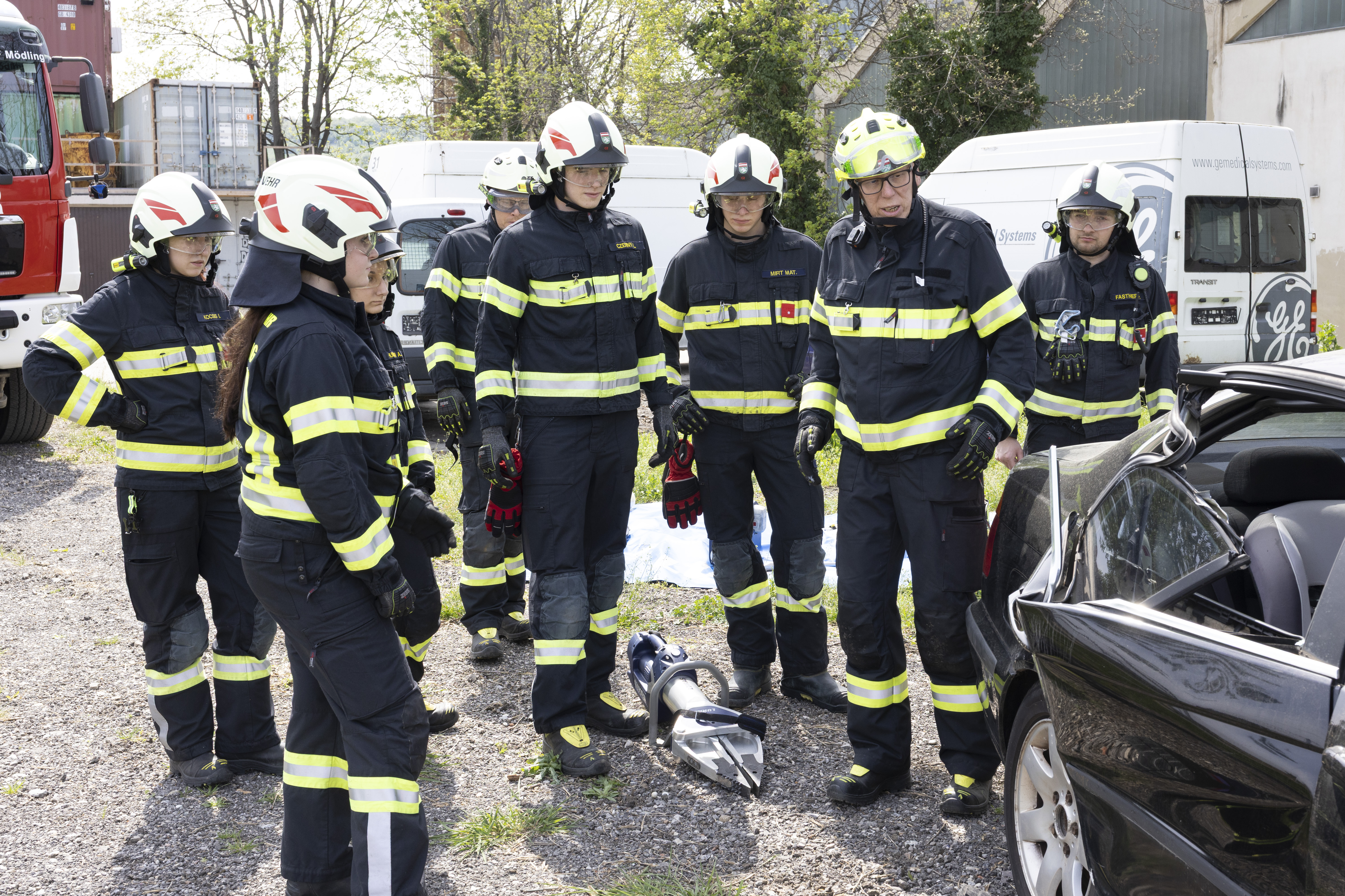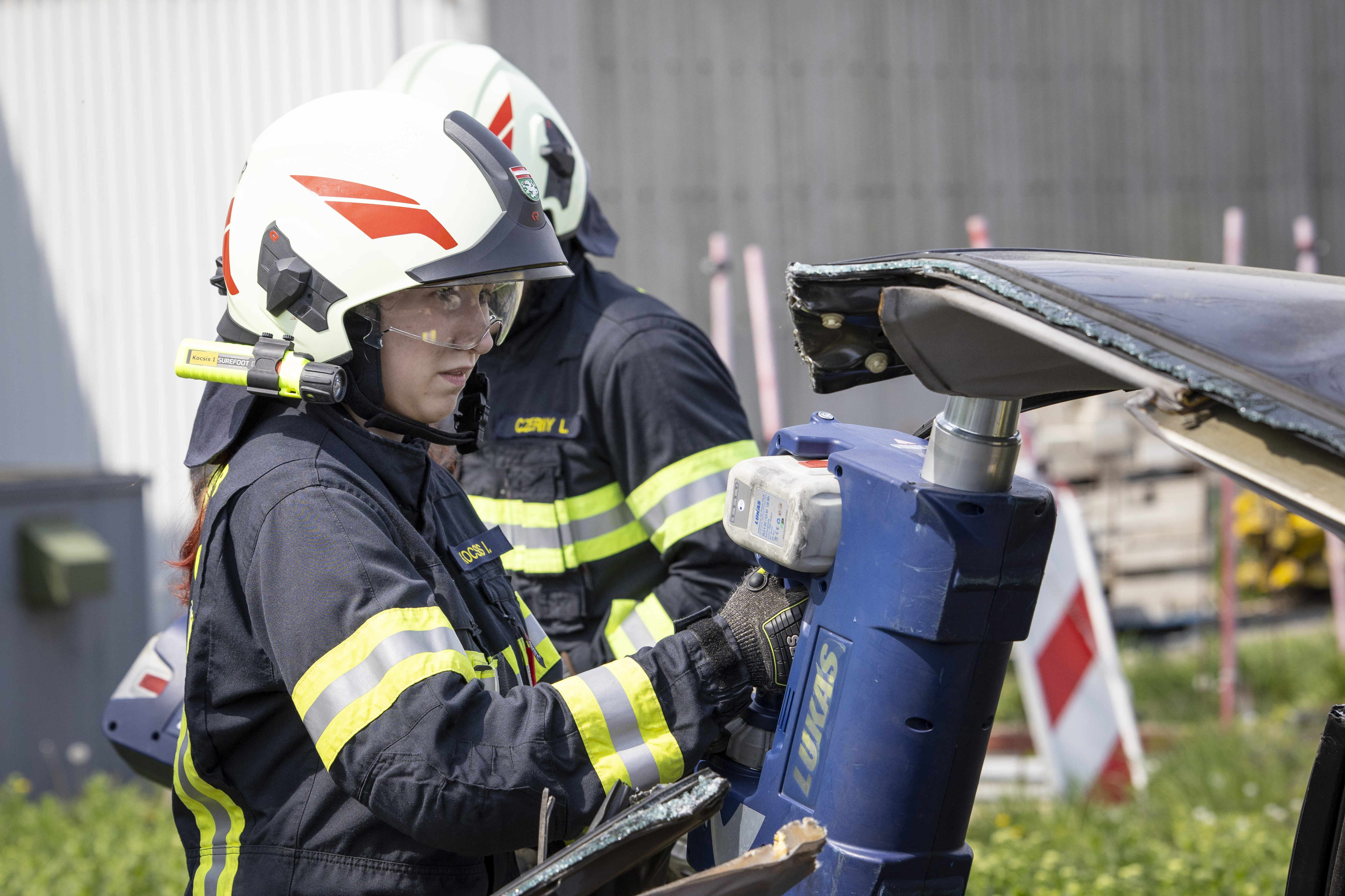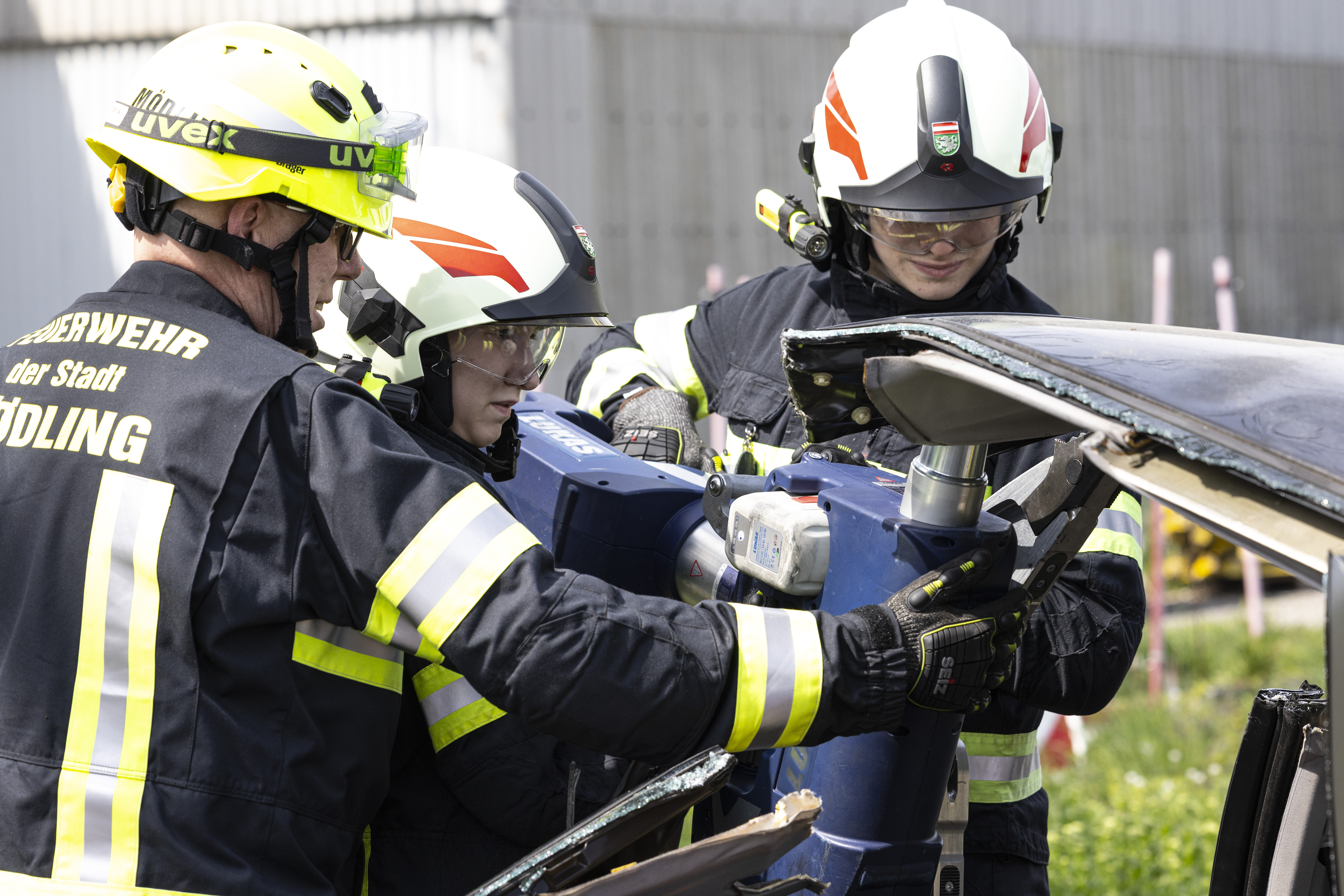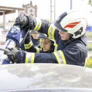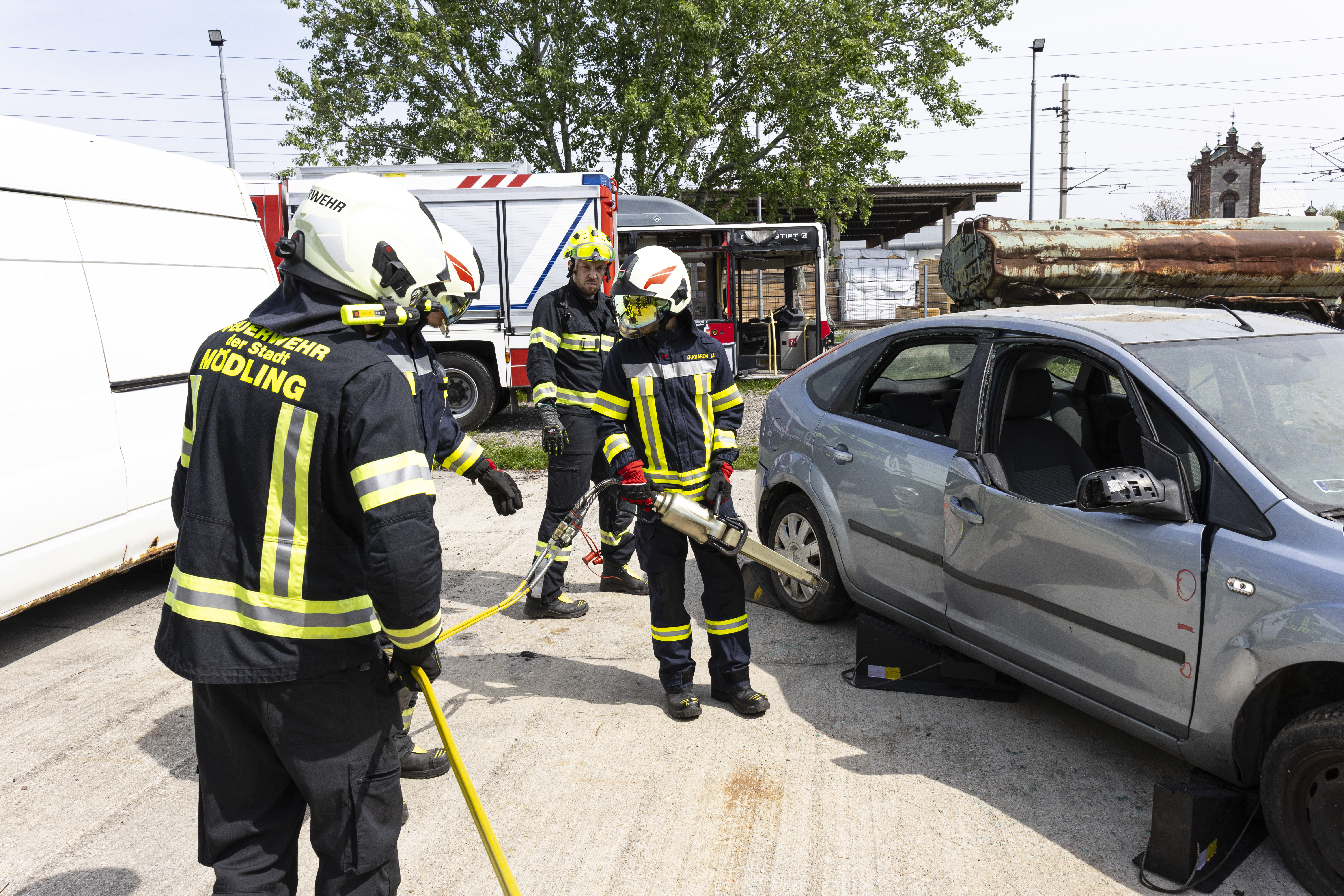Bereits gegen 07:30 Uhr konnte Zugskommandant Paul-Thorwald Fastner, als Hauptverantwortlicher für das neue Ausbildungskonzept der Grundausbildung, zehn TeilnehmerInnen und drei Ausbilder im Lehrsaal begrüßen. Nach einer kurzen Theorieeinheit zu den Grundlagen des technischen Einsatzes stand bereits praktisches Arbeiten auf dem Programm. Neben der Fahrzeug- und Gerätekunde, dem Aufbau eines Geräteablageplatzes und dem Sichern und Stabilisieren von Unfallfahrzeugen, wurden am Vormittag auch bereits erste Grundlagen zur Menschenrettung an einem Unfallfahrzeug praktisch veranschaulicht. Nach einem gemeinsamen Mittagessen wurden die TeilnehmerInnen in zwei Gruppen aufgeteilt und konnten in über zwei Stunden mit den Ausbildnern Wolfgang Freiler, Stefan Wolf, Florian Steiner und Michael Buhn die technische Menschenrettung an Unfallfahrzeugen praktisch beüben. Besonders im Mittelpunkt stand das sichere Arbeiten mit den hydraulischen Rettungsgeräten. Die Schaffung einer kleinen und großen Seitenöffnung bis hin zur Dachabnahme konnten praktisch erlernt werden. Im Anschluss folgte die letzte Einheit des Tages in welcher der Umgang mit Hebekissen gefestigt wurde.