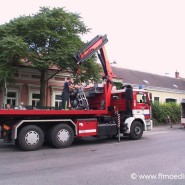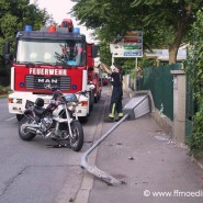 | Tätigkeit der FF Mödling: | Das fahrunfähige Motorrad wurde von der Feuerwehr per Ladekran auf Last 3 gehoben und zum Feuerwehrhaus verbracht. Tank 3 sicherte die umgeknickte Straßenlaterne indem sie den oberen Teil mittels Trennschleifer abschnitt. Weiters wurde die zuständige Firma verständigt. |