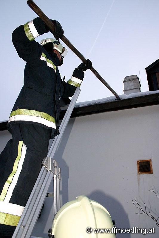 Kurz nach 17 Uhr wurde die Feuerwehr der Stadt Mödling zu einem technischen Einsatz - Entfernen einer Dachlawine - alarmiert. Auf dem Dach des Volkskundemuseums Mödling hatten sich mehrere Schnee- und Eisplatten gebildet; Diese drohten herunterzustürzen. Da zu diesem Zeitpunkt eine Veranstaltung im Innenhof stattfand mussten das Eis und der Schnee entfernt werden damit keine Gefährdung der Besucher entstehen konnte.