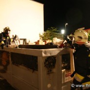 Bei der Ankunft in der Schillerstraße konnte die Besatzung von Tank 5 bereits meterhohe Flammen hinter der Grundstücksmauer erkennen. Nach kurzer Erkundung war der Brandherd in einer abgestellten Container-Mulde lokalisiert. Unter Vornahme des Hochdruckrohres ergriff die Besatzung erste Löschmaßnahmen.
