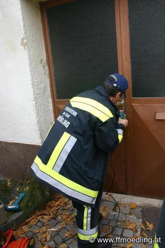 Tätigkeit der FF Mödling: Öffnen der Türe mittels Fräser,