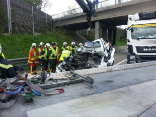Ein Bild der Verwüstung bot sich den Einsatzkräften der Feuerwehr auf der A2 in Fahrtrichtung Graz. Das Abschleppfahrzeug der Feuerwehr …
