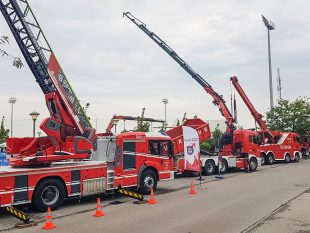Mehr dazu ..Das schwere Kranfahrzeug und der Kranbegleitcontainer nehmen am Sicherheitstag in Wr. Neudorf teil. Zahlreiche Feuerwehren- und Rettungs- Institutionen sind vertreten.